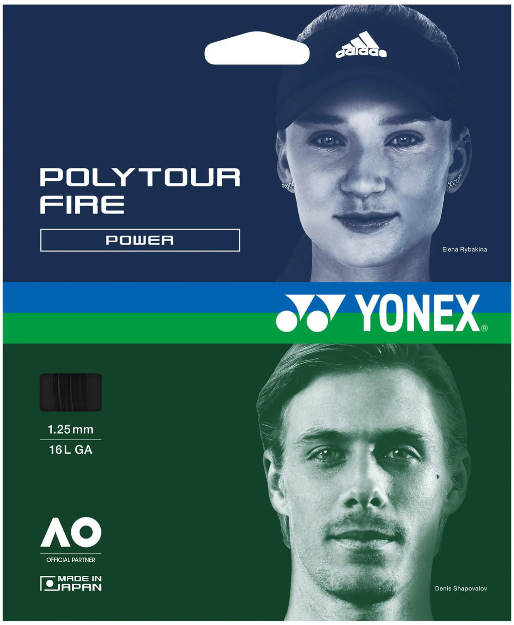 The Yonex Poly Tour Fire is a polyester monofilament capable of meeting any need, power, control and spin in a single rope. Its structure absorbs the vibrations of decentralized shots and is equipped with SIF technology, a process that increases the rope performance by making spin more spin on the ball, thanks to silicone oil infused into the rope.